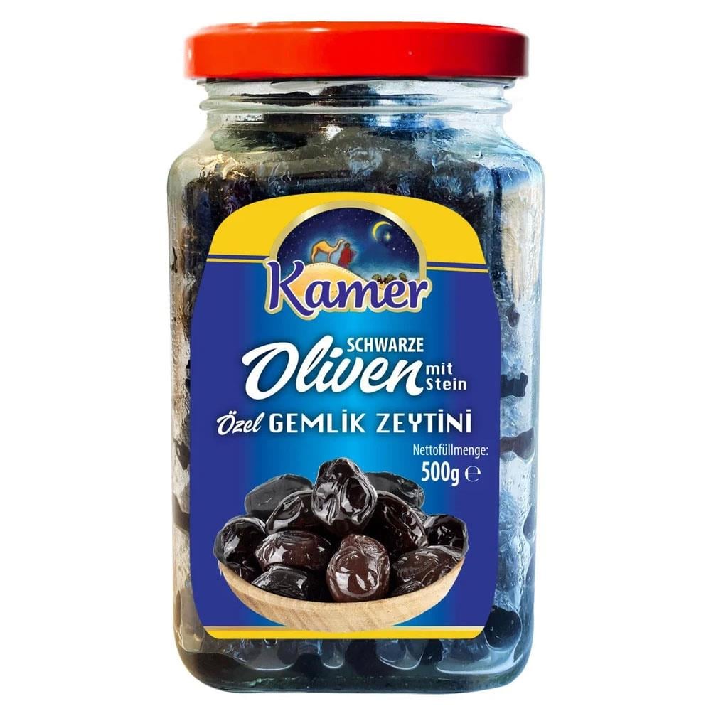 Kamer Natural Oil Gemlik Black Olives 500g Black Diamond Jar 291-320 850cc